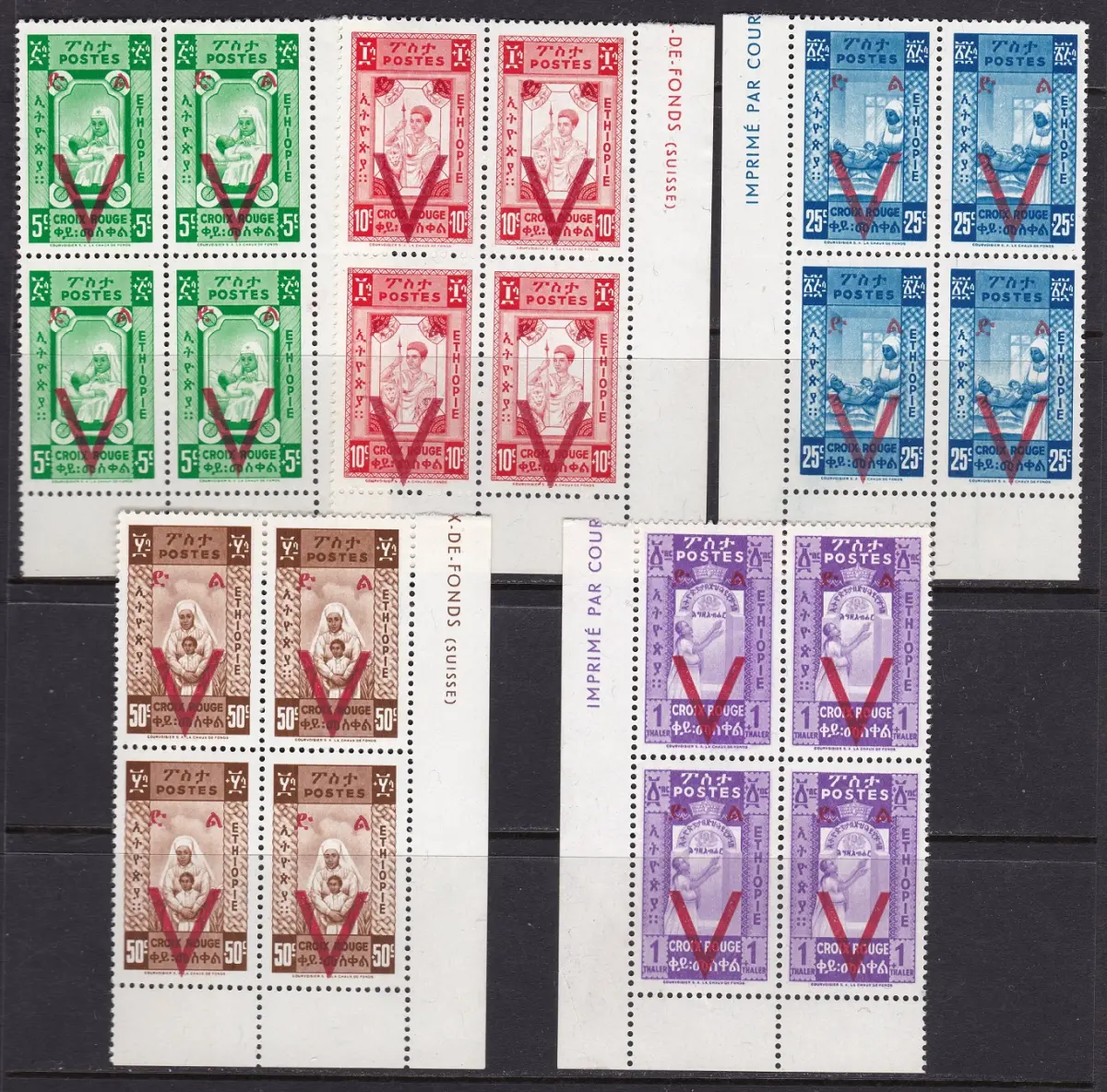 1945 ÄTHIOPIEN - YT Nr. 240/244 5 Werte MNH/** VIERTELBLATTWINKEL Pro Rotes Kreuz Yvert Tellier Euro 200 A/M Lot 87