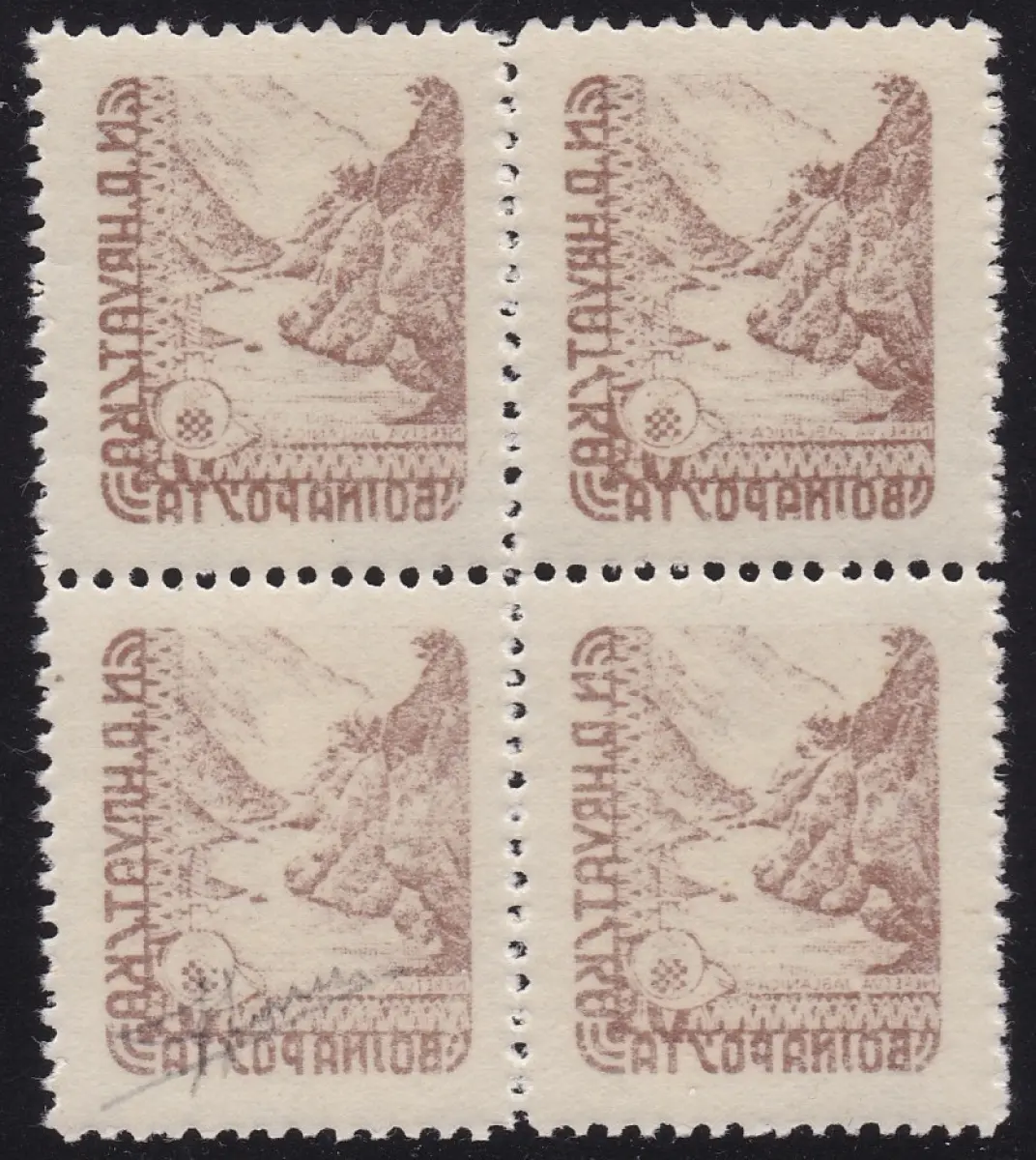 1945 KROATIEN / CROATIA / HRVATSKA, Militärpost Nr. 2 VIERTEL MIT ABZIEHBILD MNH / ** Signiert Sorani Landschaft der Neretva AA / beige Album Lot 15