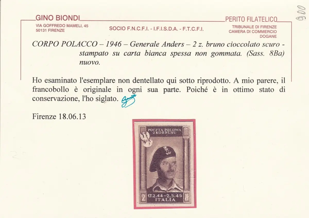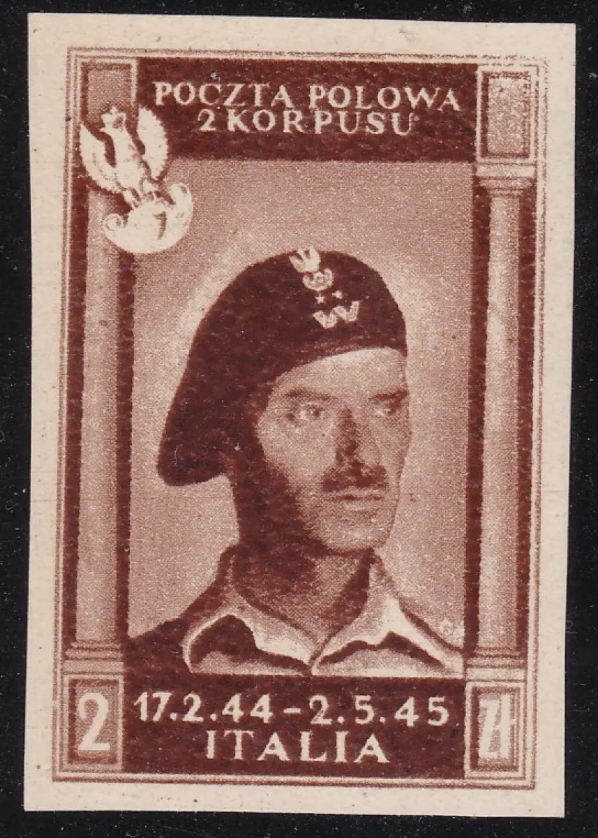 1946 POLNISCHES KORPS, Nr. 8Ba 2 zl. dunkelschokoladenbraun NEU OHNE GUMMI Zertifikat Blond Sächsischer Katalog Euro 900 Lot 81