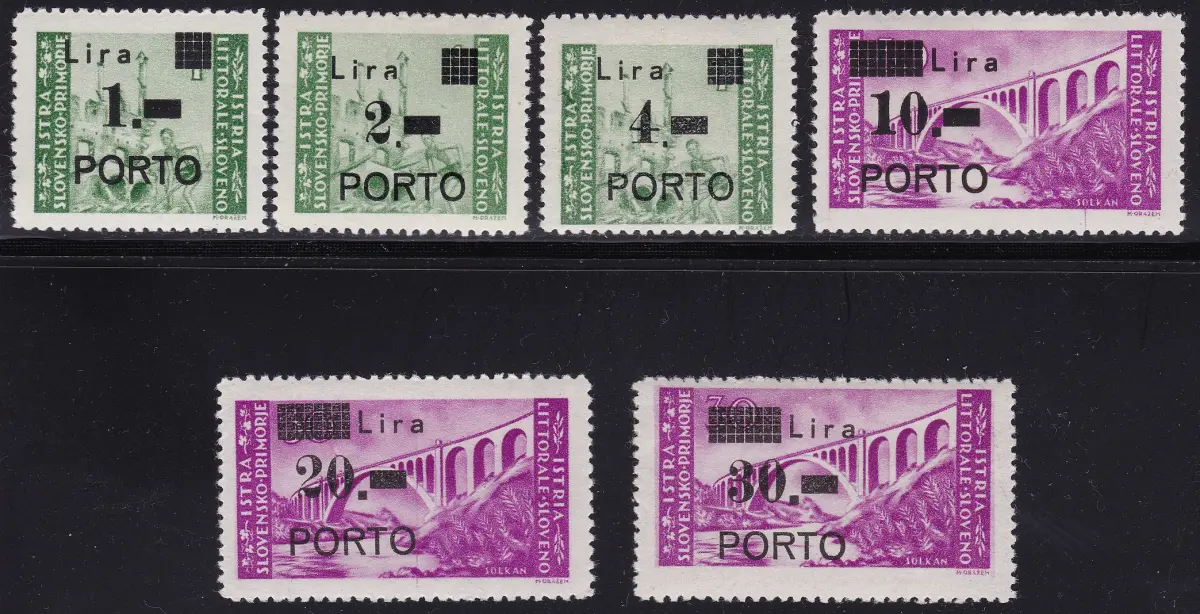1946 SLOWENISCHE KÜSTE, Steuer Nr. 8/13 Serie mit sechs Werten postfrisch / ** Überdruck 'PORTO' und Neuwert Sächsischer Katalog Euro 220 Lot 81