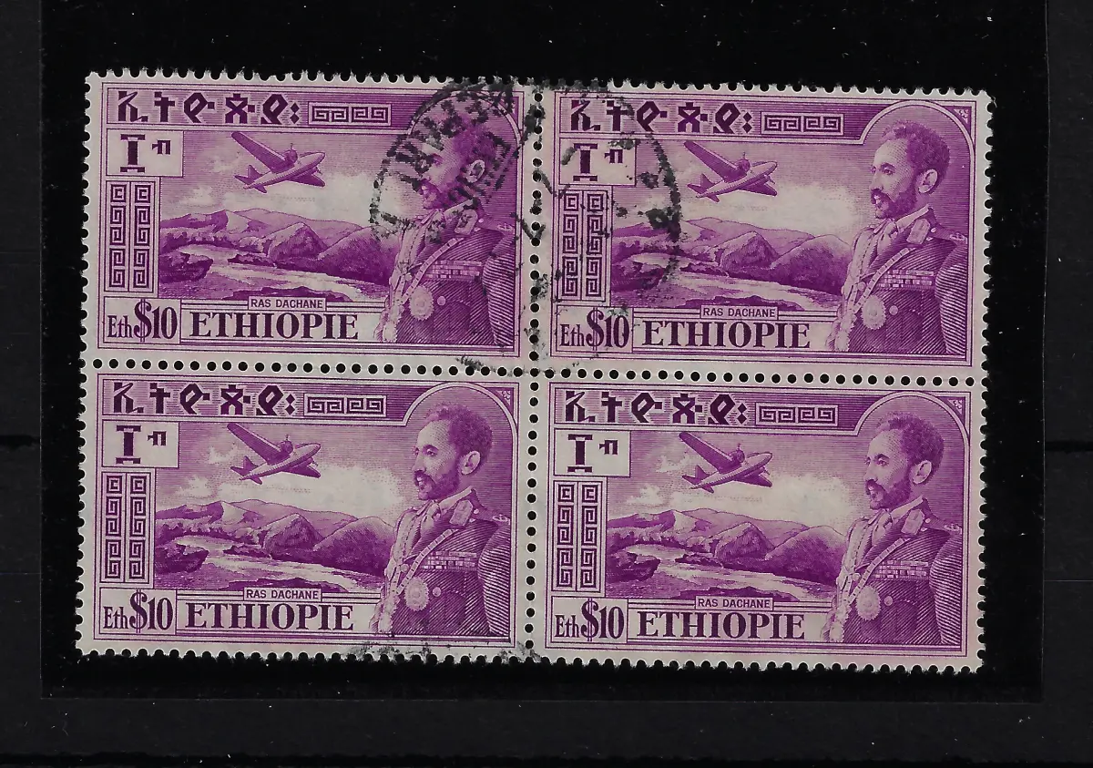 1947 ÄTHIOPIEN - Yvert Luftpost Nr. 30 - 10$ Block von 4 - GEBRAUCHT Kaiser und Ansicht 'Ras Dachane' Yvert Tellier Euro 100 A/M Lot 87