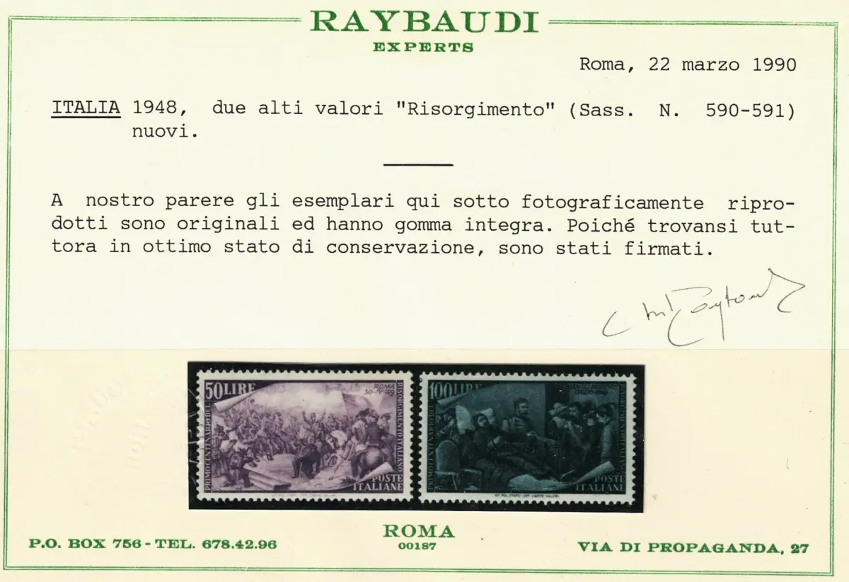 1948 Republik, Nr. 580/591+E32 Risorgimento 13 Werte MNH/** Serie von guter Qualität mit Raybaudi Zertifikat Einheitlicher Katalog Euro 450 Lot M