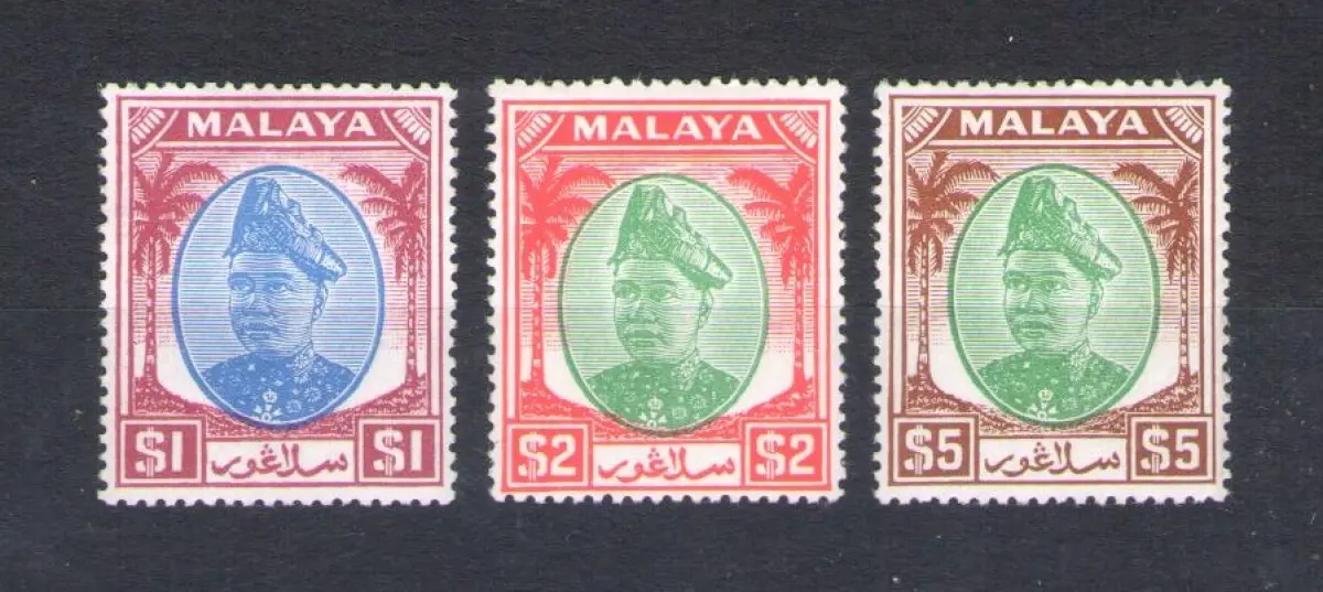 1949-55 Malaysian States - SELANGOR - Stanley Gibbons Nr. 108-110 - 3 High Values - MH* Sultan Hisamud-din Adam Shah Stanley Gibbons 66.50 Lot 301-13