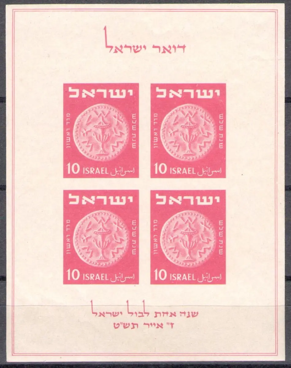 1949 ISRAEL - Zettel Nr. 1 MNH ** VOLLGUMMI Nationalausstellung Tel Aviv Yvert Tellier Euro 300 - rote Auslandskarton - abol