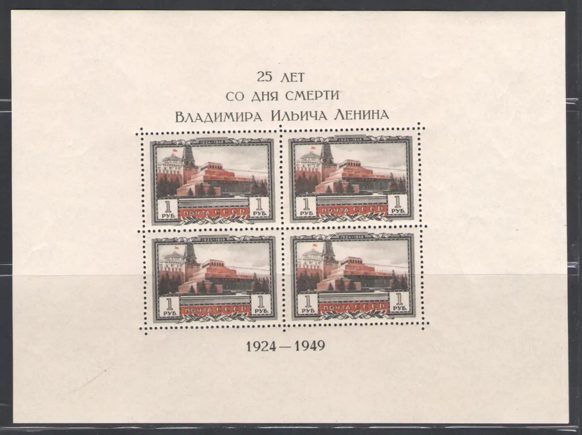 1949 RUSSLAND, 25 Tod Lenin, BF 11 gezahnt, postfrisch ** Katalog Euro 1000 Schwarzalbum 11