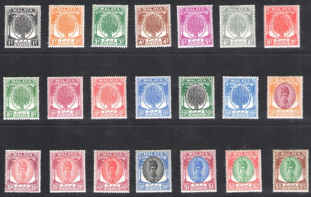 1950-55 KEDAH - Stanley Gibbons Nr. 76/90 - 21 Werte - komplette Serie - MH*