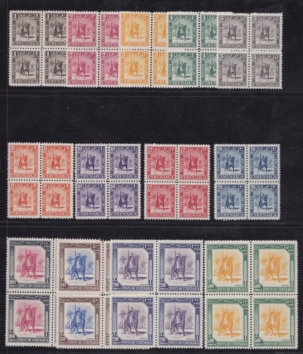 1950 CIRENAICA Autonome Verwaltung, Nr. 1-13 Ritter Senussita MNH ** - Bolaffi-Signaturen auf dem Wert von 500 m. grün und gelb UNGEWÖHNLICH IN BLÖCKEN Sächsischer Katalog Euro 1100 L 800 A / Master Phil blau