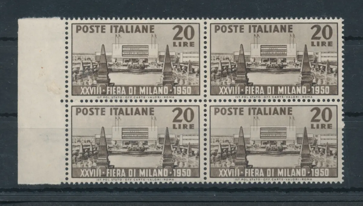 1950 Italien - Republik, 28 Fiera di Milano - 1 Wert, Nr. 616, gute ausgezeichnete Zentrierung, postfrisch ** - Viererblock, Vollgummi und Original, perfekt.