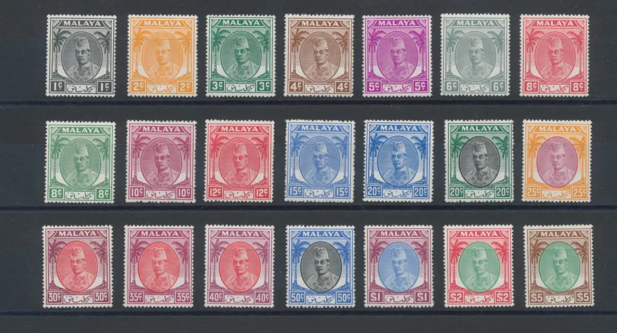 1951-55 MALAYSISCHE STAATEN KELANTAN, SG 61/81 Satz 21 MLH* Sultan Ibrahim STANLEY GIBBONS 200 Lotto71 Gianblu