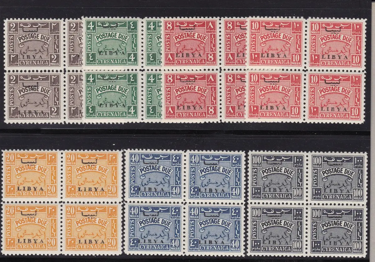 1951 LIBYEN Ausgabe für die Kyrenaika, Steuern Nr. 1-7 MNH / ** BLOCK VON 4 Sächsischer Katalog Euro 2200 A / Master Phil blau