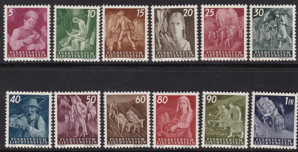 1951 LIECHTENSTEIN, Nr. 251/262 12 Werte postfrisch/** Bauernleben A/M Lot 63
