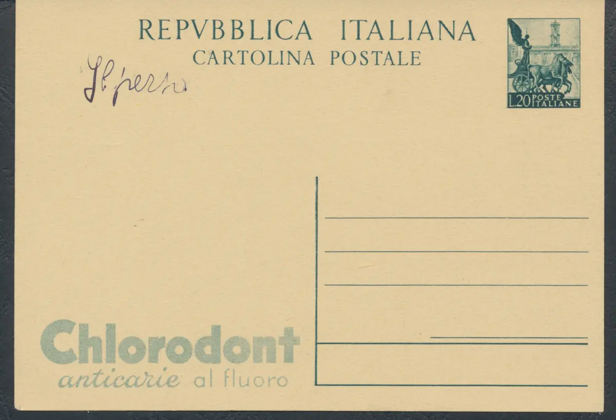 1951 Republik - C 143 - R9/2 - Quadriga, Postkarte, L 20 dunkelgrün, Chlorodont - Federschrift wie gescannt - Neuer Filagrano-Katalog Euro 120 rotes Album ganze Postkarten