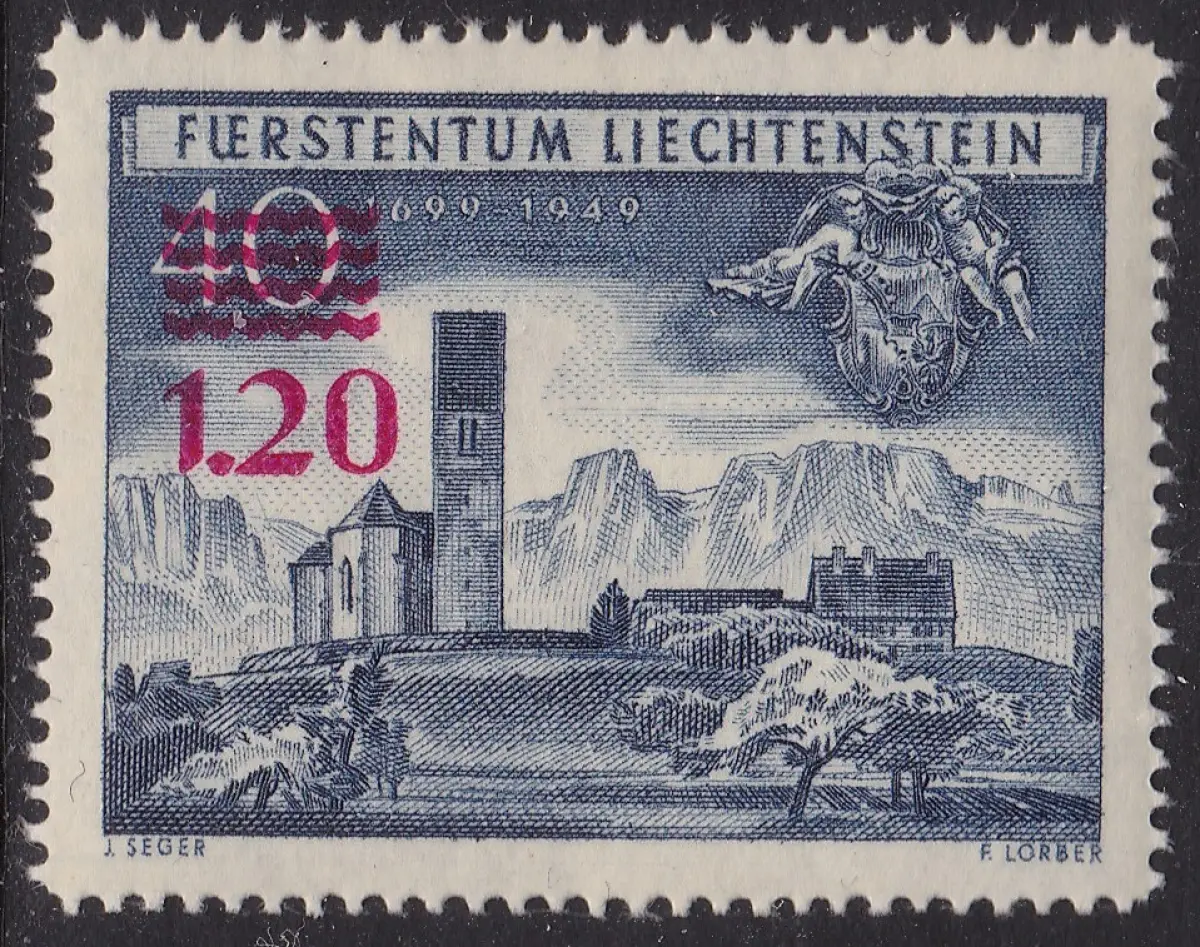 1952 LIECHTENSTEIN, # 271 Briefmarke mit neuem Aufdruck, postfrisch** A/M Lot 63