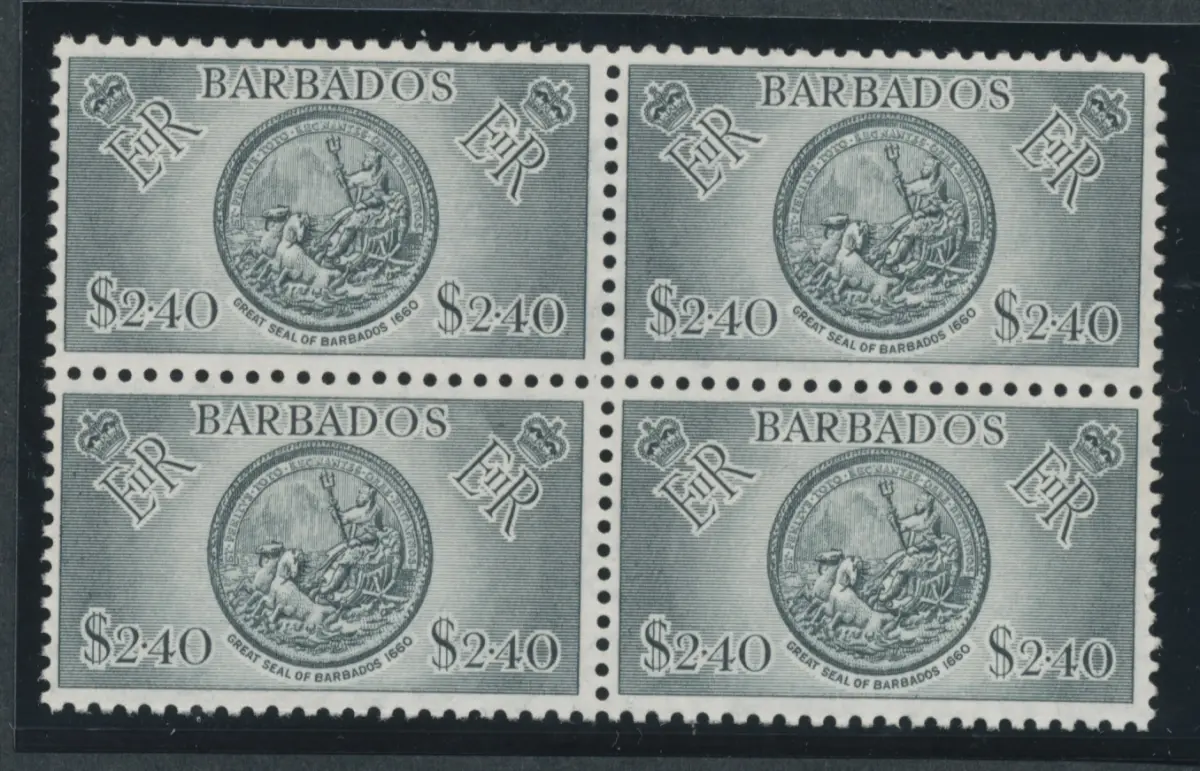 1953 BARBADOS, Stanley Gibbons Nr. 301, $ 2,40 schwarz, Block of Four, MNH ** STANLEY GIBBONS 30 - Lotto 301-5