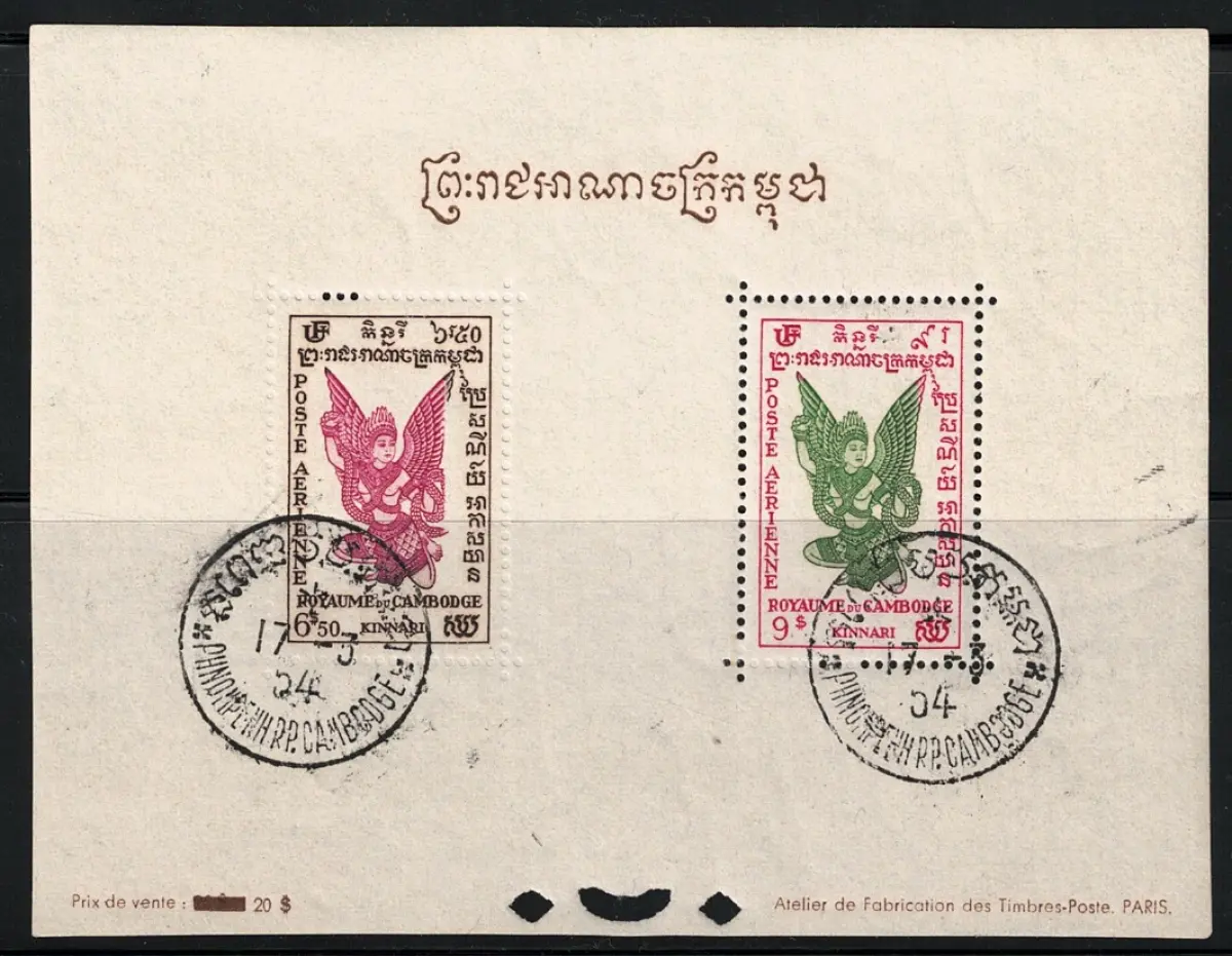 1953 KAMBODSCHA, Yvert n. 4/6, 3 Luftpostzettel, gebraucht mit Vollgummi und Original auf der Rückseite Yvert Katalog 2019 Euro 265 - Lot Laos rotes Album Buchhandlung mit arabischen Ländern