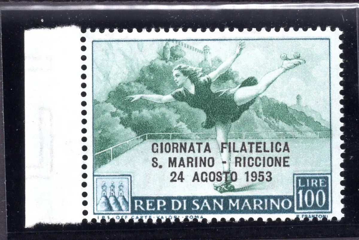** MNH - 1953 Skater Lire 100 überdruckt Philatelistischer Tag Nr. 399 sehr gut zentriert mit Vollgummi Katalog Euro40 Cod.2118/WEB