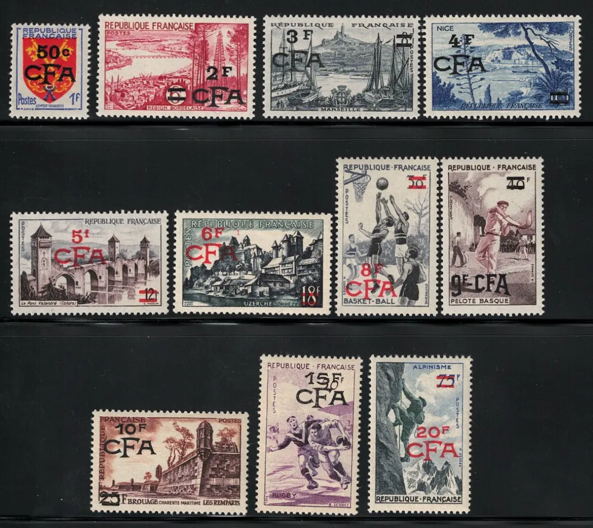 1955-56 REUNION, Aufgedruckte Ansichten # 320/30, MNH ** Yvert Katalog Euro 47 Album Rosso Bolaffi Lot Französische Kolonien