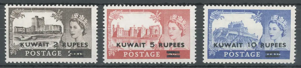 1955-57 KUWAIT, Stanley Gibbons Nr. 107a/109a - Typ II - 3 Werte - MNH ** BRIEFMARKEN GROSSBRITANNIEN ÜBERDRUCKT Stanley Gibbons 2022 350 - Lot 301 8 - Kampf A/12