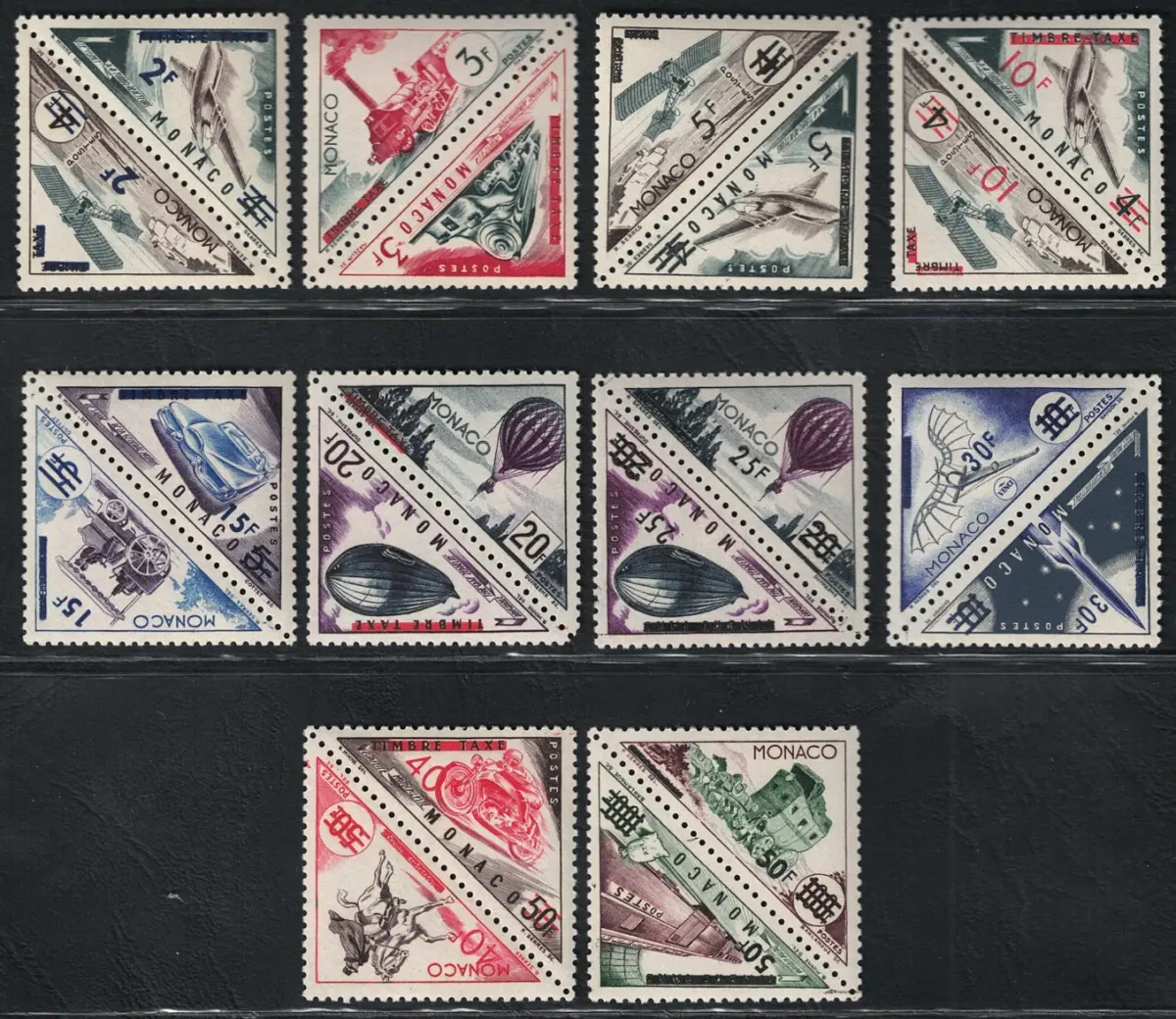 1956 MONACO, überdruckte Steuermarken # 453/72 - postfrisch ** Einheitskatalog Euro 145 - Lot M Holzkiste