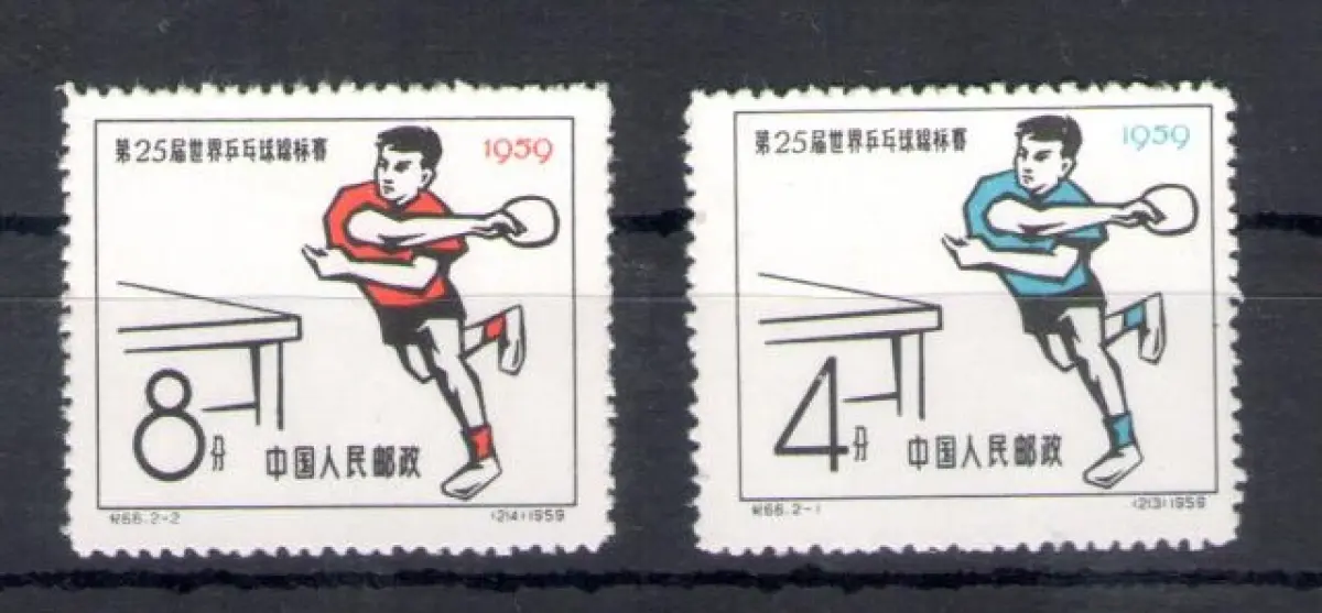 1959 CHINA - Tischtennis in Dortmund - Mi.Nr. 451-52 - postfrisch ** ohne Gummi Themenbox 2 braun aus Los 291