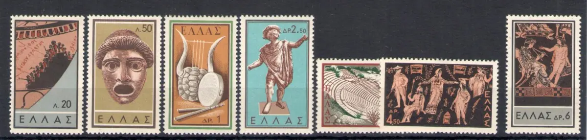1959 GRIECHENLAND - Antike Theater, Yvert Nr. 685-91, 7 Werte, postfrisch ** Yvert Katalog Euro 27,50 - braune Themenbox 2