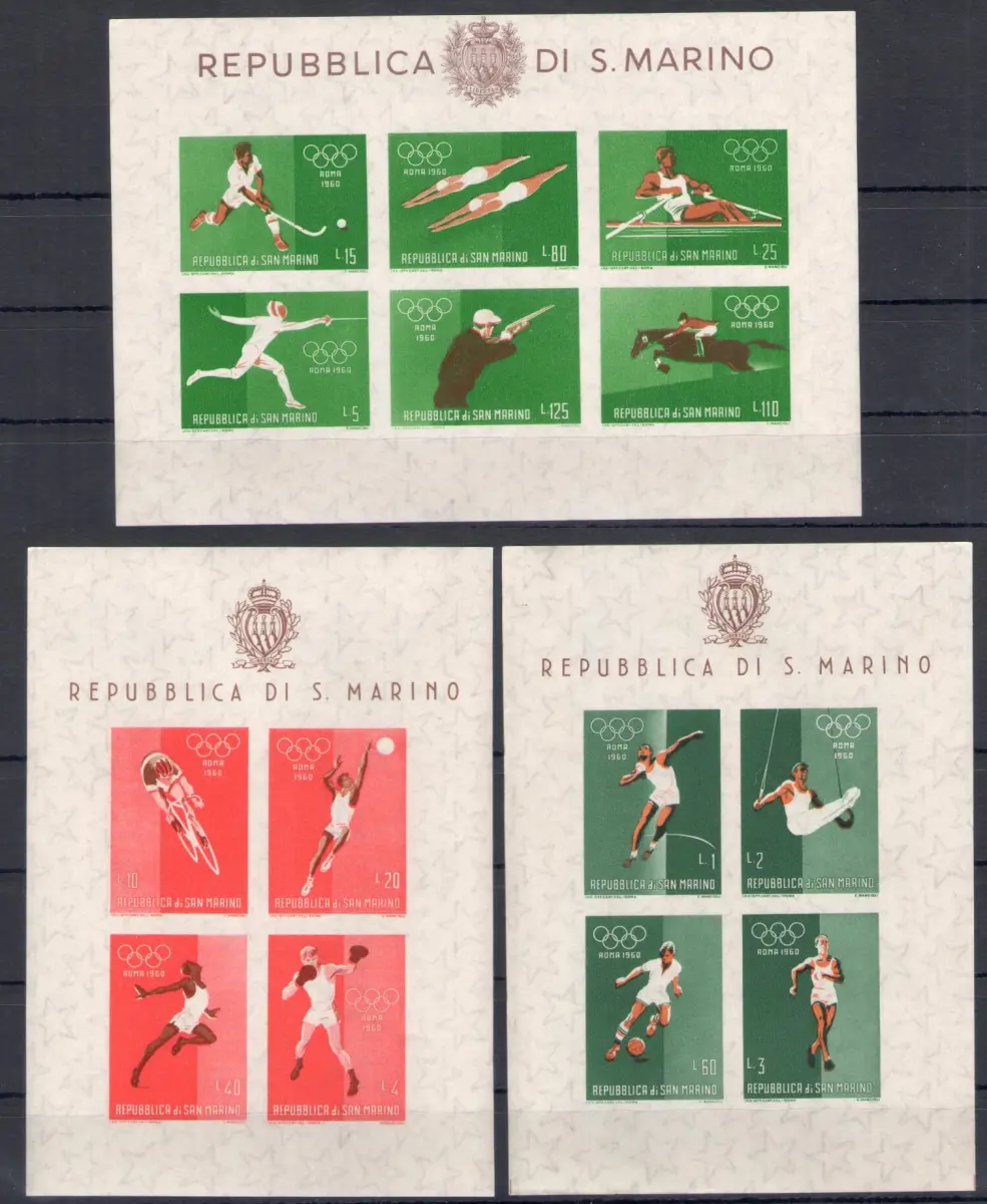 1960 San Marino, BF N. 19/21 - 3 Olympische Zettel - postfrisch **, perfekt mit Vollgummi und Original.