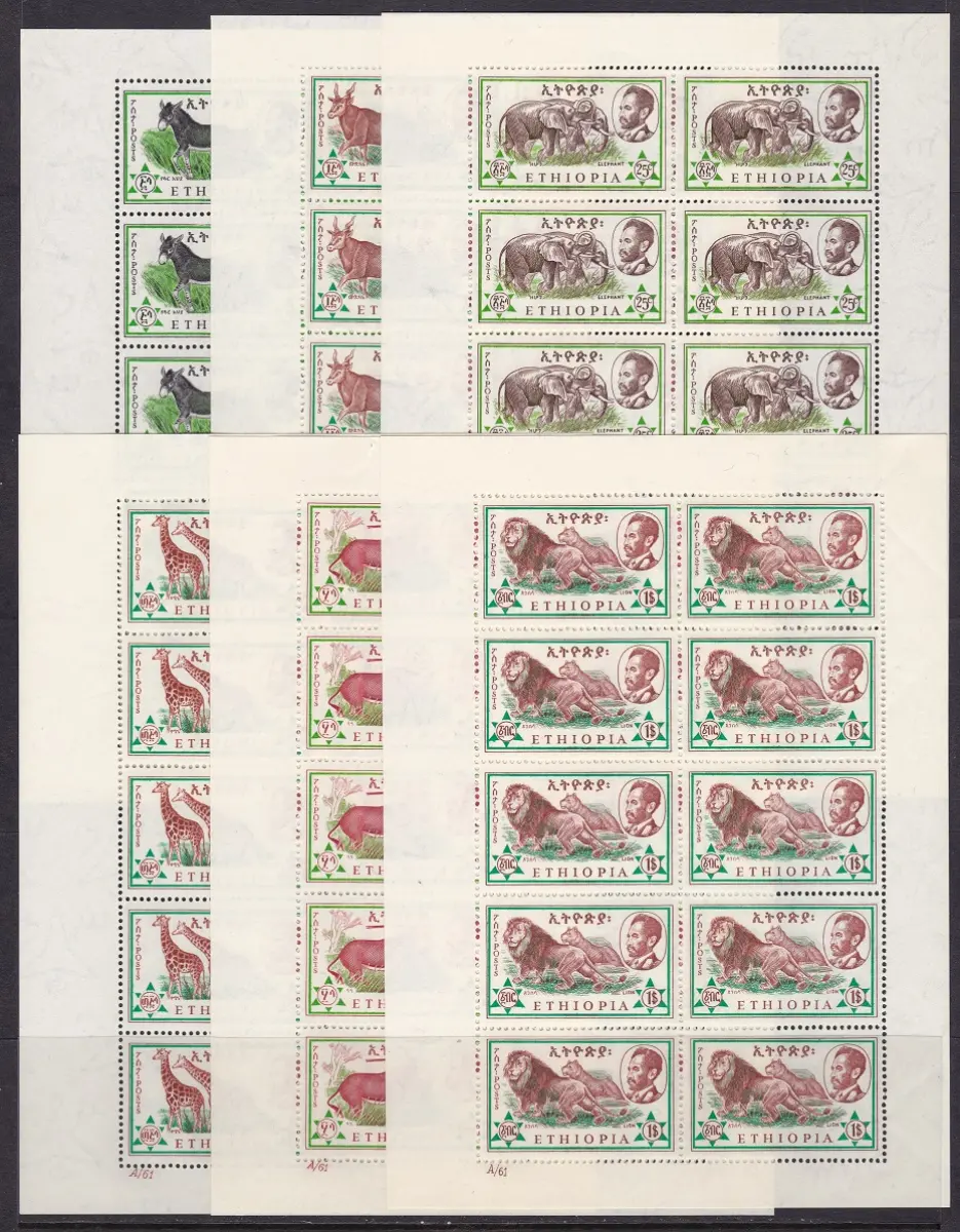 1961 ÄTHIOPIEN - YT Nr. 371/376 Kleinbogen 10 MNH/** mit Tafelnummer Wildtiere Yvert Tellier Euro 65 A/M Lot 87