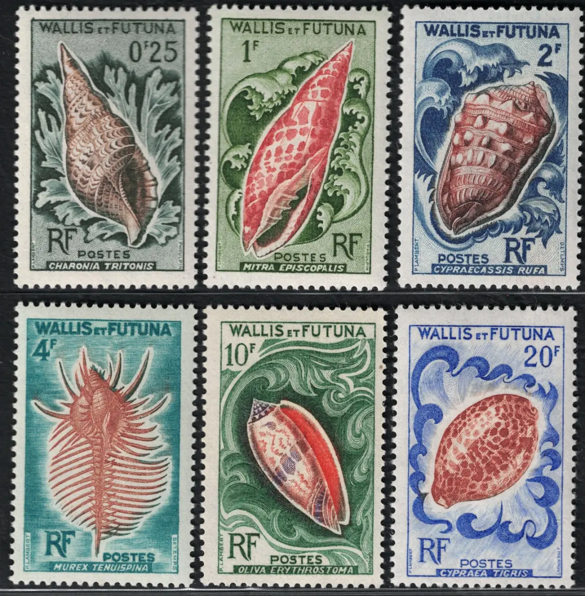 1962-63 Wallis et Futuna, Yvert # 162/67, Muscheln, postfrisch ** Yvert Katalog Euro 25 Album Rosso Bolaffi Lot Französische Kolonien Blaues Mammut