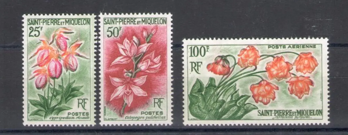 1962 Saint Pierre et Miquelon, Blumen - Yvert Nr. 362-63 + Luftpost 27 - 3 Werte - postfrisch **