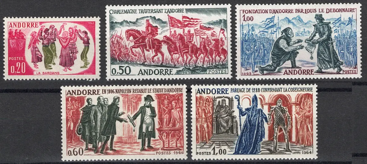 1963-64 FRANZÖSISCHES ANDORRA, # 166/70 Historische Ereignisse, postfrisch **