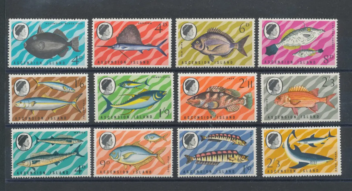 1968/1970 ASCENSION - Michel 118/121+122/125+130/133 - Elisabeth - Fische - Serie mit 12 Werten, postfrisch ** Michel Katalog Euro 42,50 1 Lot 71 GianFebruar 2021