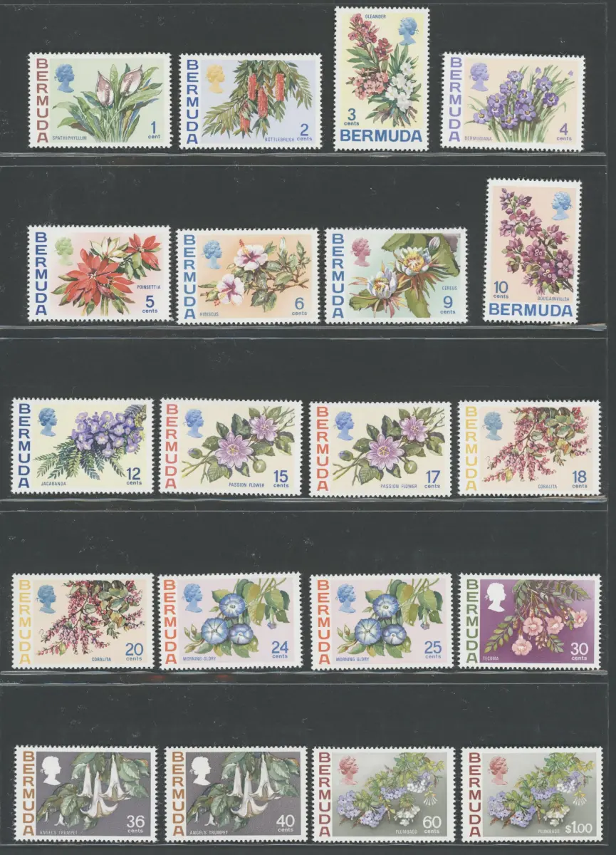 1970 BERMUDA 24 val Flowers SG Nr. 249/265a postfrisch ** Sehr frisch Perfekte Qualität!!!