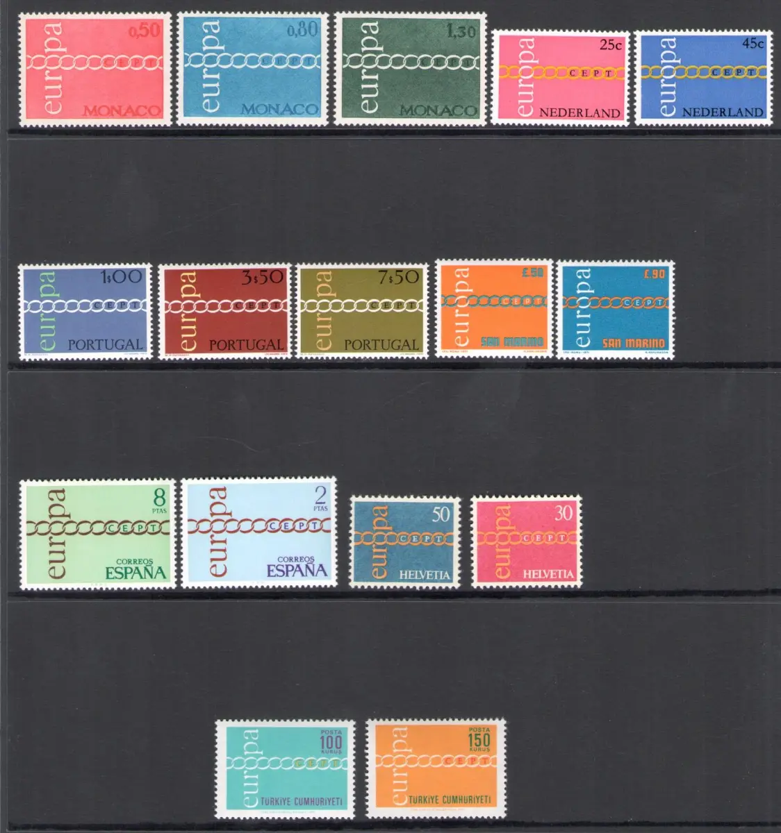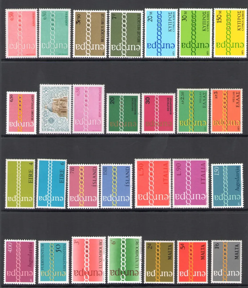 1971 EUROPA CEPT, kompletter Jahrgang, 21 Länder 44 Werte postfrisch**