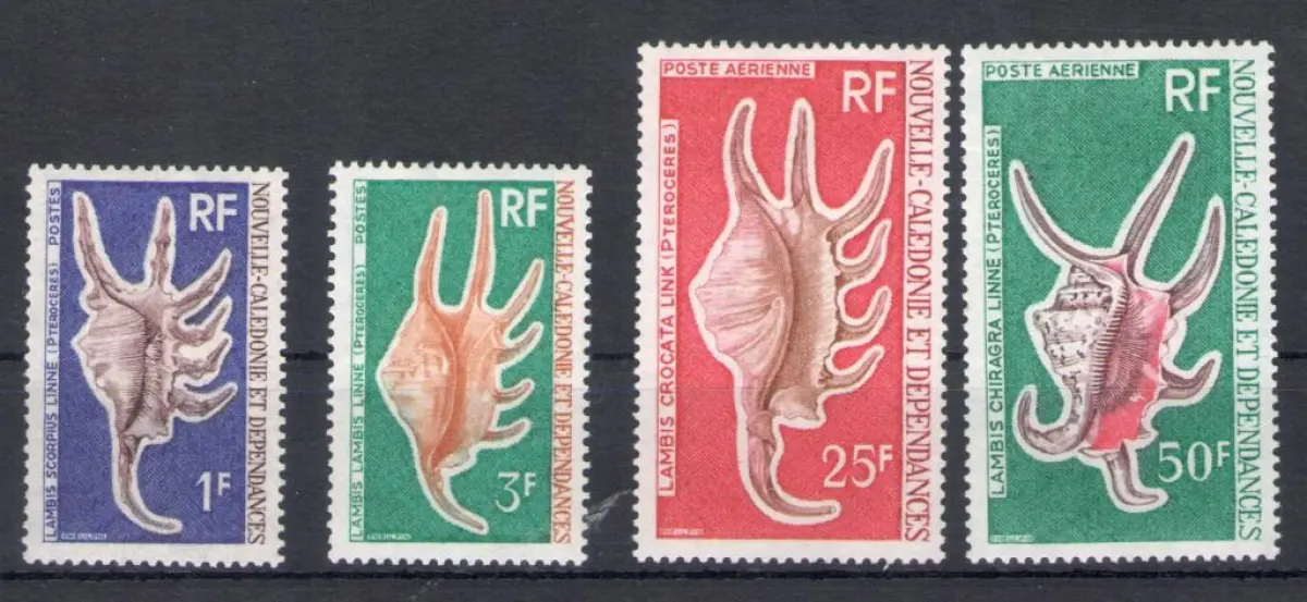 1972 Neukaledonien - Yvert Nr. 379/80 + PA 129/30 - Muscheln - MNH ** Yvert Katalog Nr. - Themen-Außenbox 2