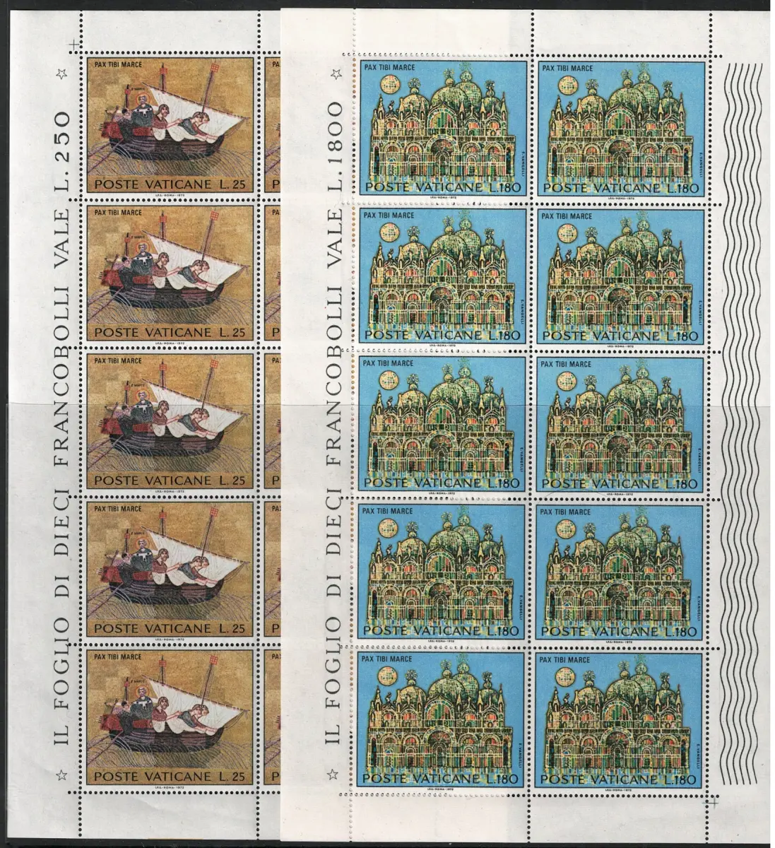 1972 Vatikan, Salviamo Venezia # 518 und 532, Kleinbogen mit 10 Werten, postfrisch **