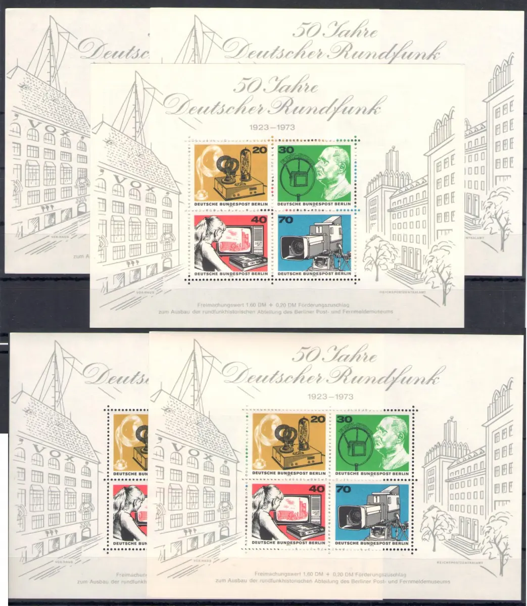 1973 Deutschland - Berlin - 50 Rundfunk - Yvert Nr. 416/19 - MNH ** - 5 gleiche Blätter, perfekt mit Vollgummi und Original.