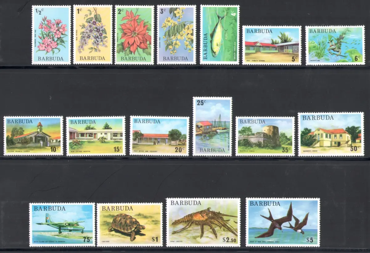 1974-75 Barbuda - Yvert et Tellier Nr. 191-07 - Ordentliche Serie - 17 Werte - MNH ** Yvert et Tellier Euro 35 - Lot 256-39