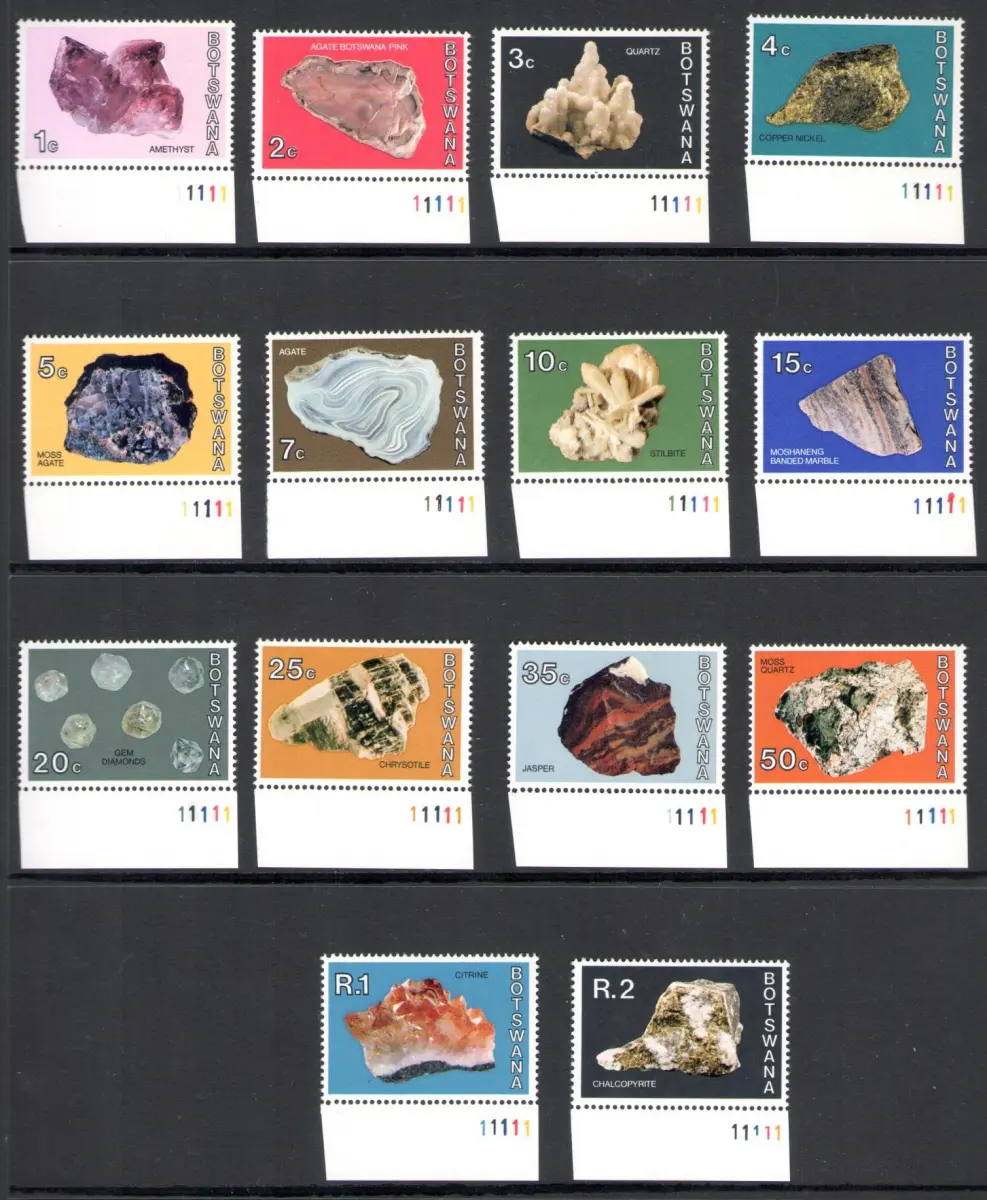 1974 BOTSWANA - Yvert Katalog Nr. 266-79 - Ordentliche Serie Mineralien - 14 Val. MNH** - Alle unteren Bogenränder wie gescannt