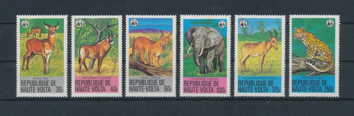 1979 Haute Volta, Yvert Nr. 488-93, Tiere in Gefahr - WWF, 6 Werte - postfrisch ** Michel - weißer Karton Haus