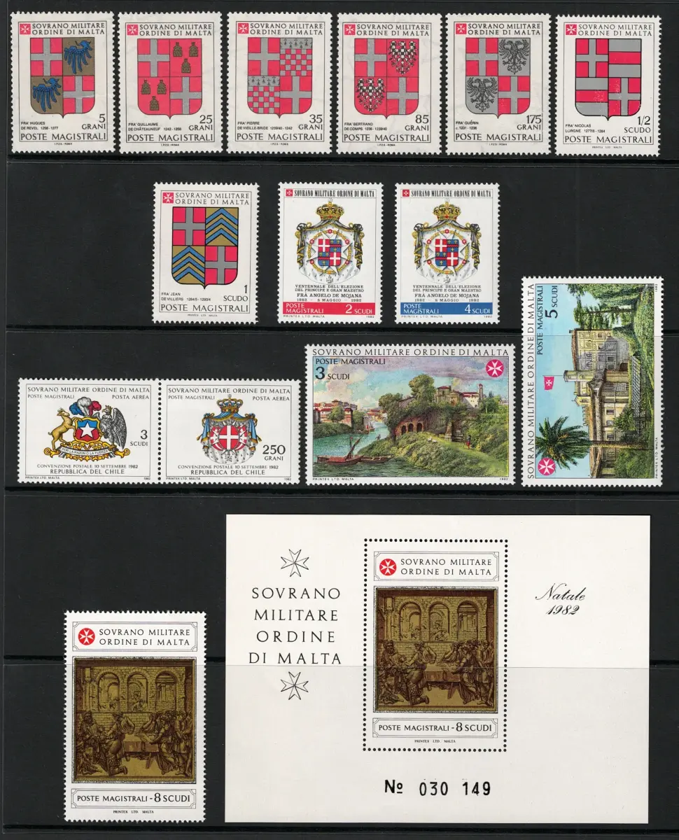 1982 Smom, kompletter Jahrgang 15 Werte + 1 Zettel - postfrisch ** Philatelie - postfrische Marken - Sammeln - komplette Jahrgänge seltene Briefmarken - geprüfte Briefmarken - Philatelie-Experten - Briefmarken-Sachverständige - Kauf Verkauf Sammlermarken - Philatelieausstellungen - Zettel