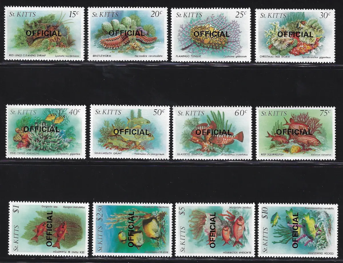 1984 ST. KITTS, Yvert e Tellier n. 44/55, offizieller Aufdruck - postfrisch**