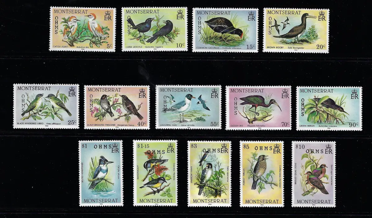 1985 Montserrat, Yvert n. 56/69, Vögel OHMS Überdruck - postfrisch**