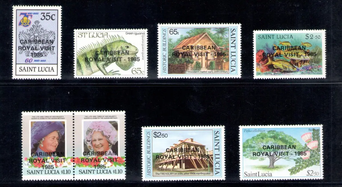 1985 ST. Lucia - Besuch Elisabeth II in der Karibik - Serie von 8 Werten - Yvert Tellier Nr. 783-90 - Die 790 hat eine schöne Sorte wie gescannt - MNH** - Das Wort Visit steht Vi T die S geschrieben und die I wegen des Vorhandenseins eines wahrscheinlichen Fremdkörpers fehlen - Los 256-9