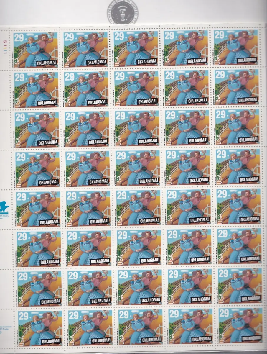 1993 USA, Nr. 2462 Musical Oklahoma Bogen mit 40 Werten MNH/** AM Lot 106