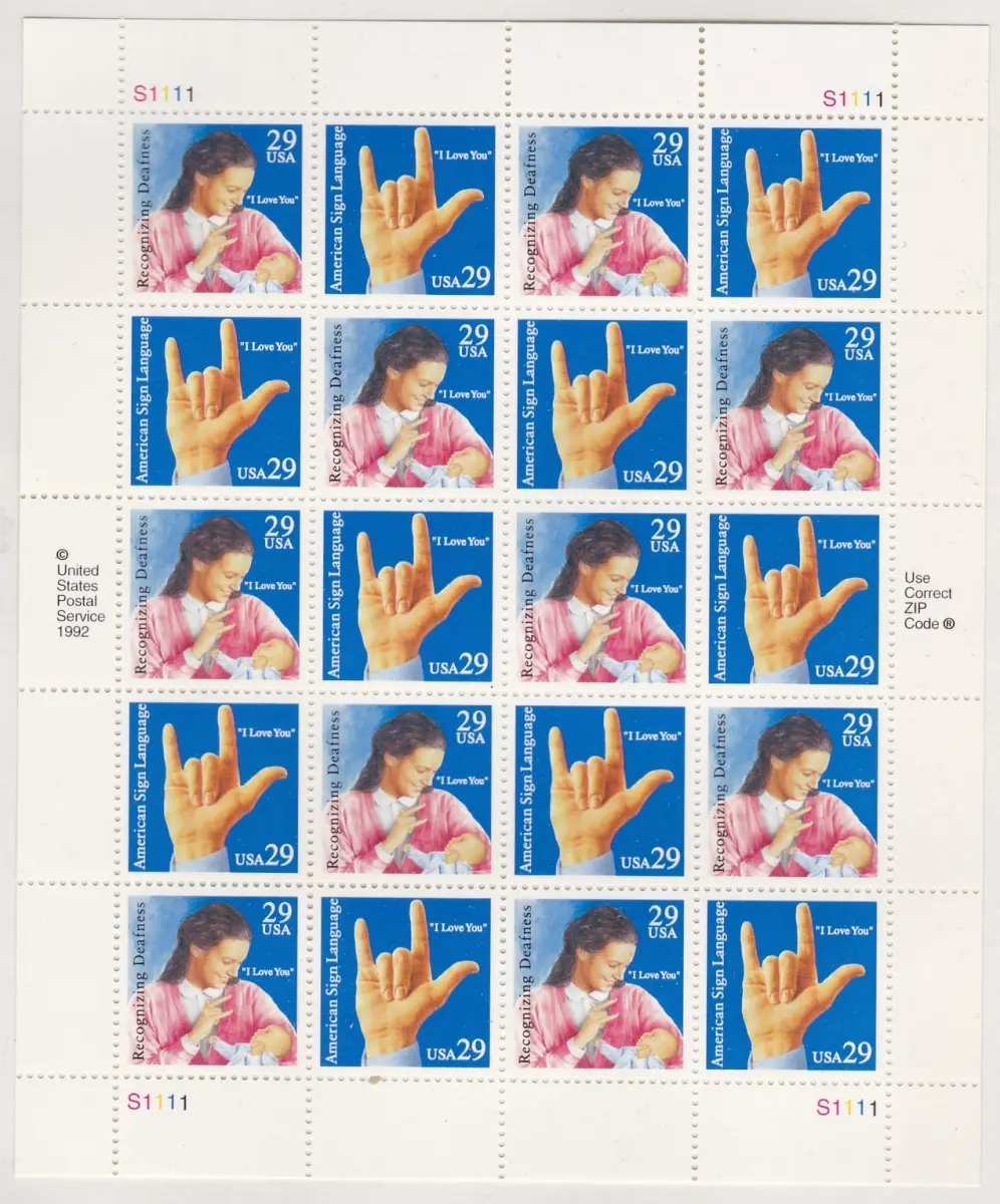 1993 USA, Nr. 2510/2511 Die Gebärdensprache Blatt mit 20 Werten MNH/** AM Lot 106