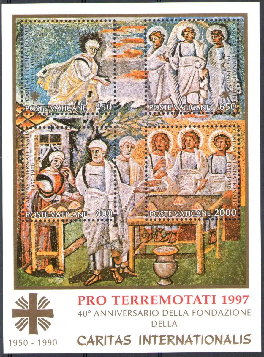 1997 Vatikan, Überdruckbogen in Rot Pro Erdbeben 1997 Blatt Nr. 18 MNH ** Einheitskatalog BF 18 Euro 26