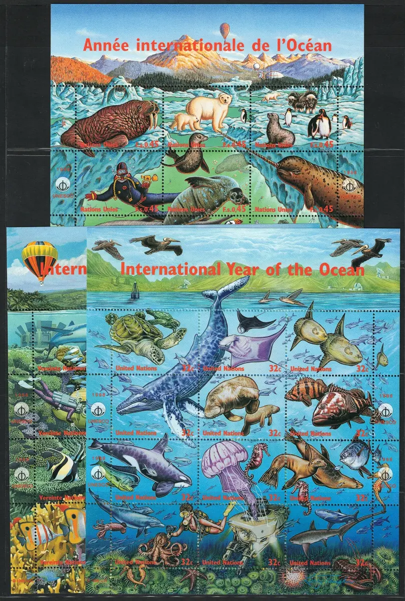 1998 VEREINIGTE NATIONEN, Internationales Jahr der Ozeane, 3 Büros, postfrisch **