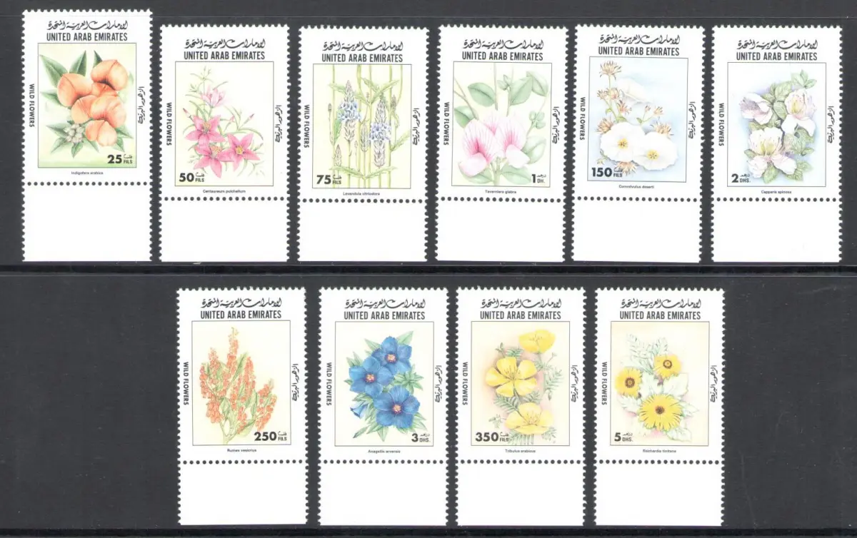 1998 Vereinigte Arabische Emirate, Stanley Gibbons Nr. 612/21 - Blumen - MNH** - VOLLGUMMI und Original - sehr frische und spurlose neue Briefmarken Stanley Gibbons Katalog Pfund 24 A / Rotes Album Arabische Länder