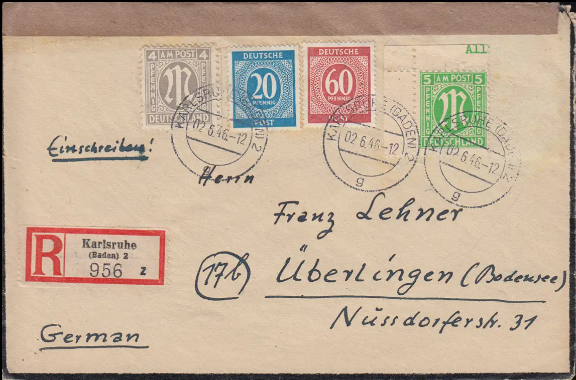 2+3 AM-Post avec 924+933 Communauté MiF R-Lettre KARLSRUHE 2.6.46 n. SONT CONSULTÉS