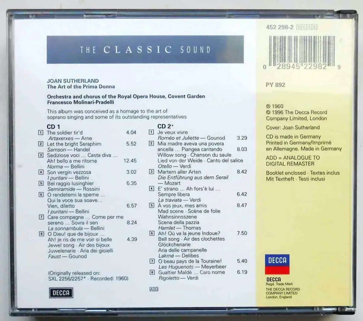2 CD Box Joan Sutherland: The Art of The Prima Donna (Decca) 1999
